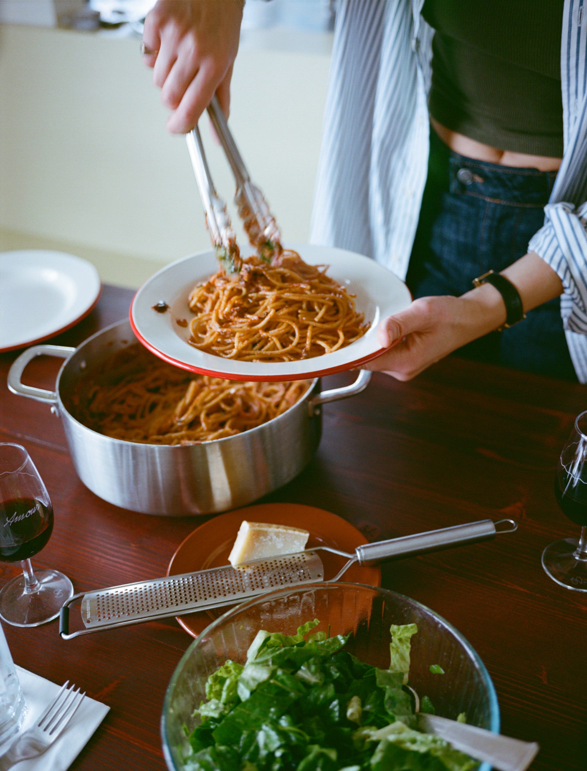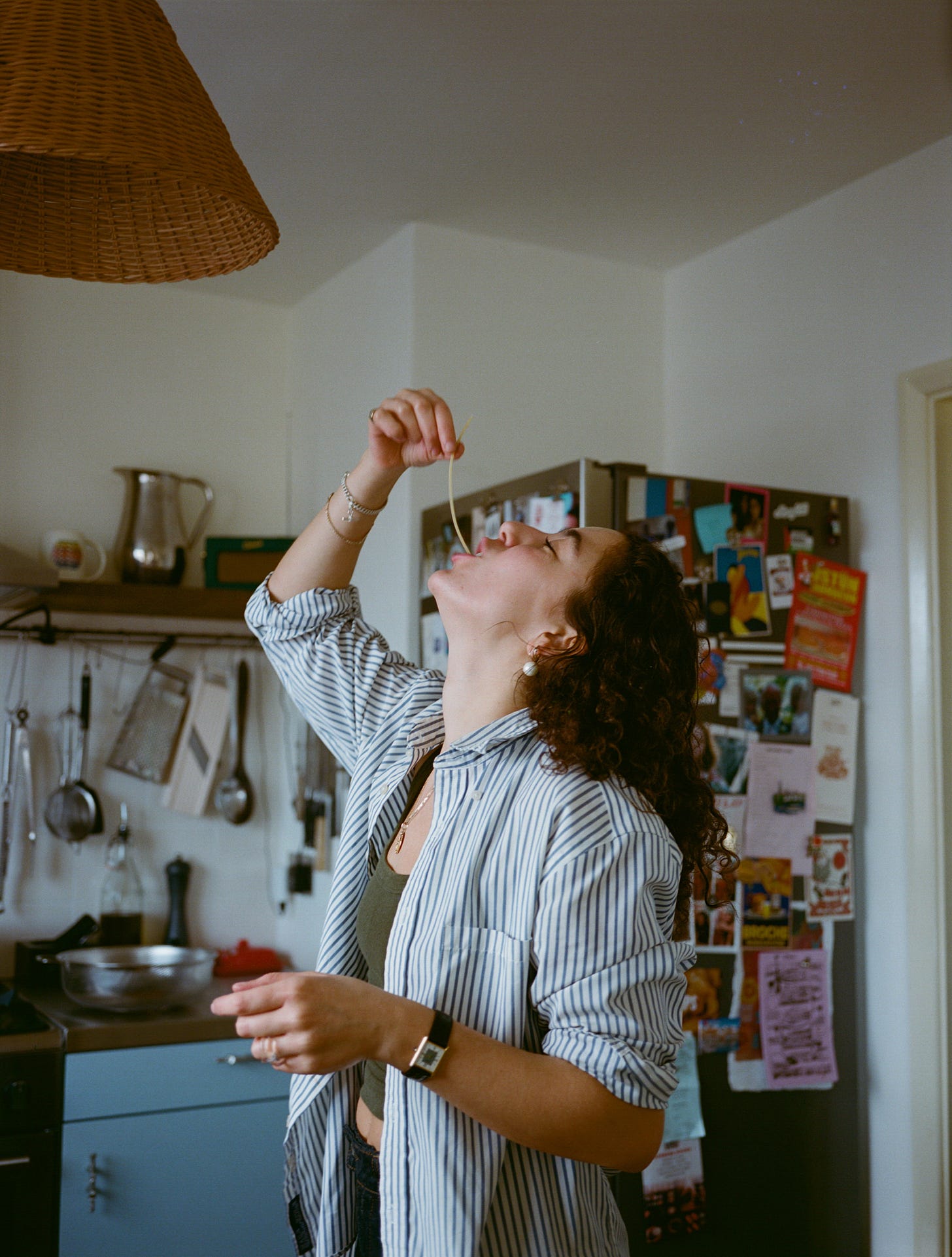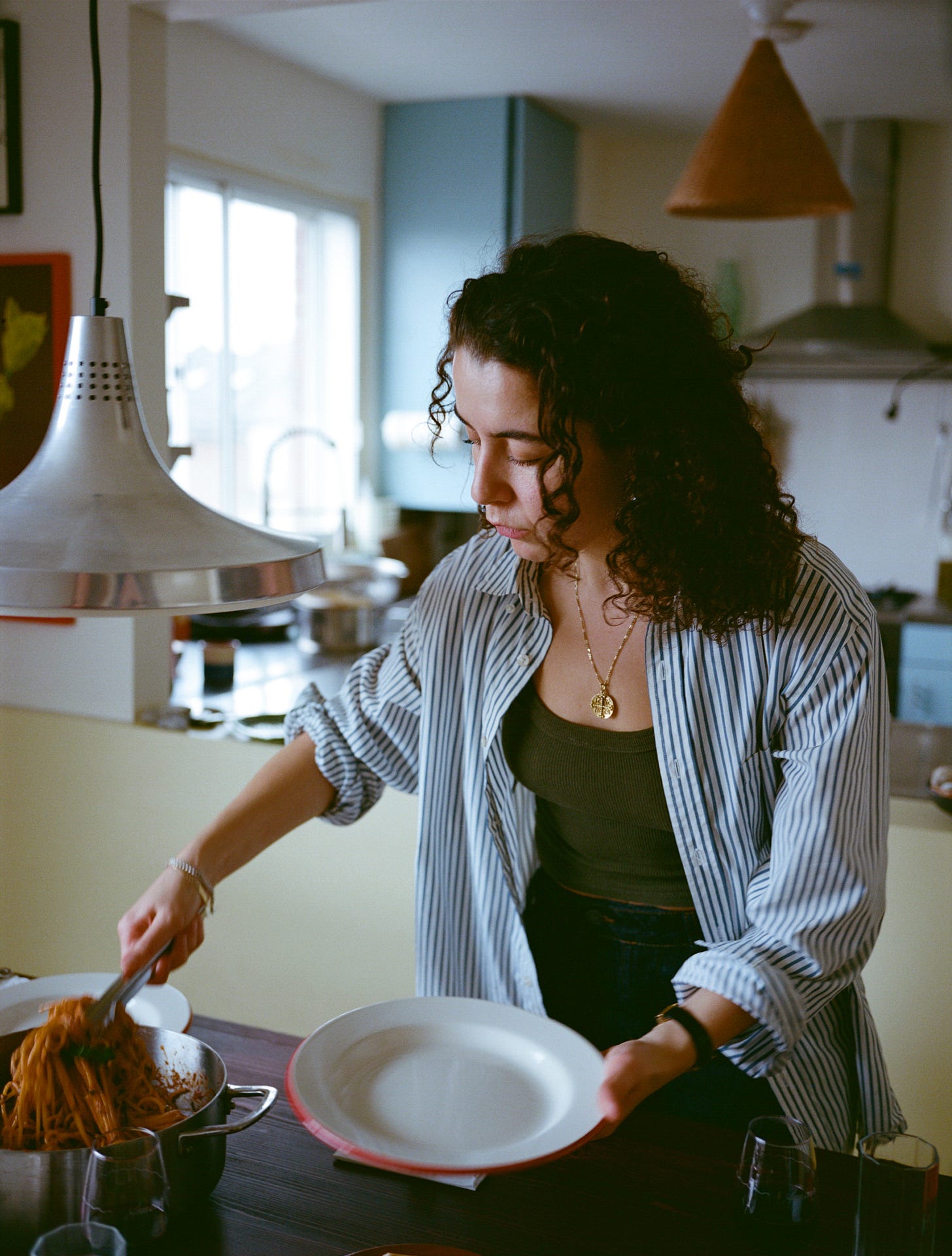 When slicked with sauce, a simple thing turns sensual, begging to be slurped with hunger and a disregard for politeness. With no other pasta shape do I feel like Sophia Loren, oozing sex appeal as I cook. I stand by the hob, dropping my head back to thread a boiling strand down my throat, checking its doneness. In that moment, I sense that I too am an icon.